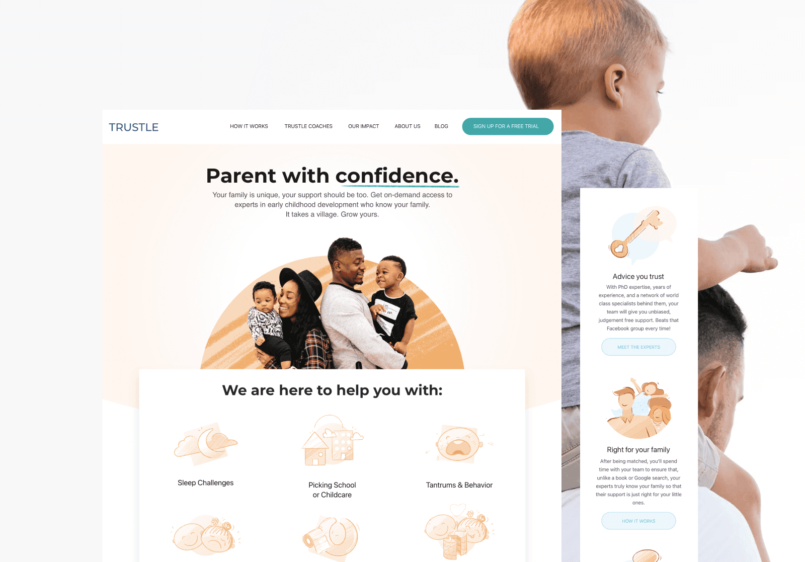 A website and custom illustrations for a platform connecting families with early childhood experts.