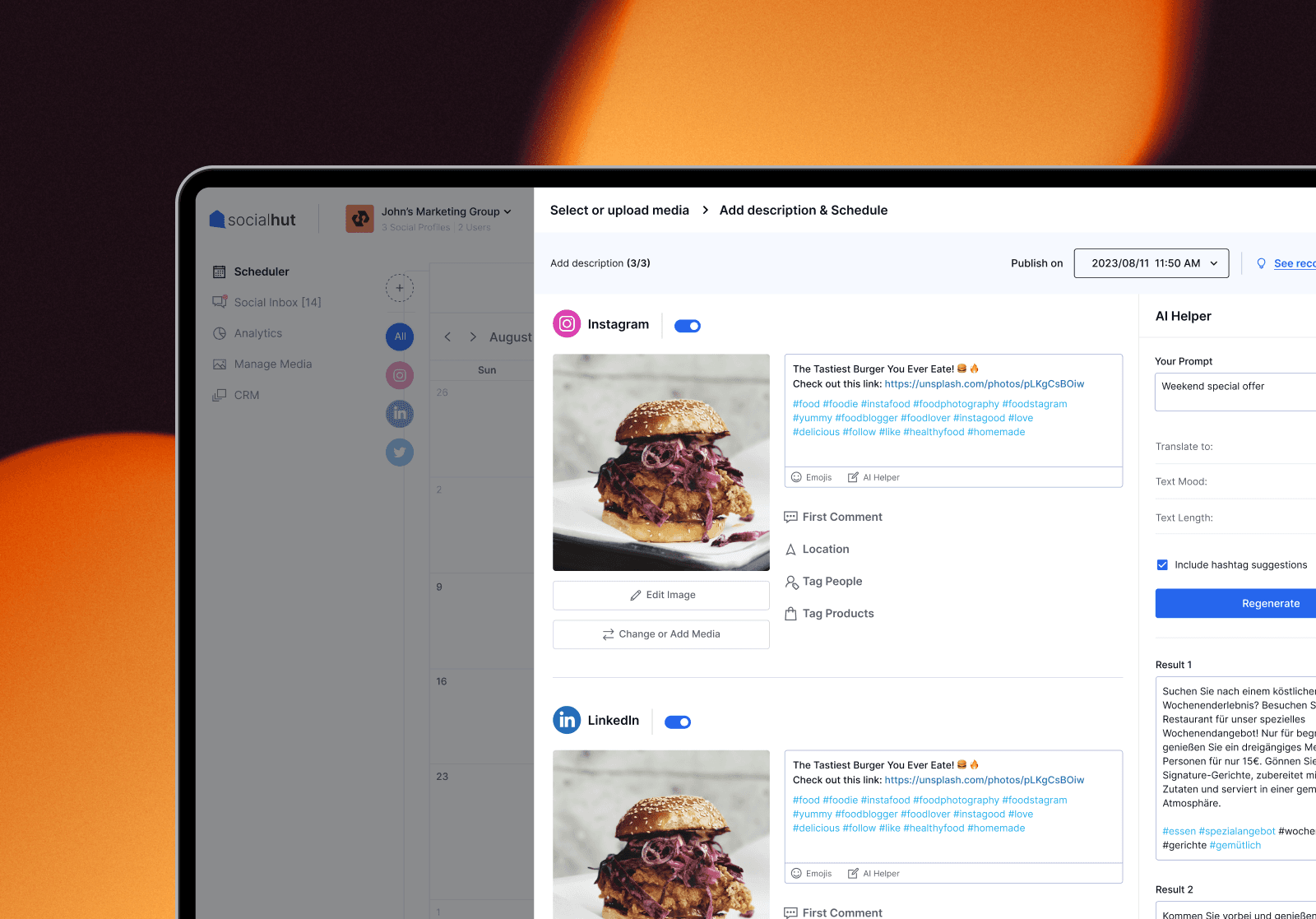 Product design for a SaaS platform that streamlines social media and customer management with AI.