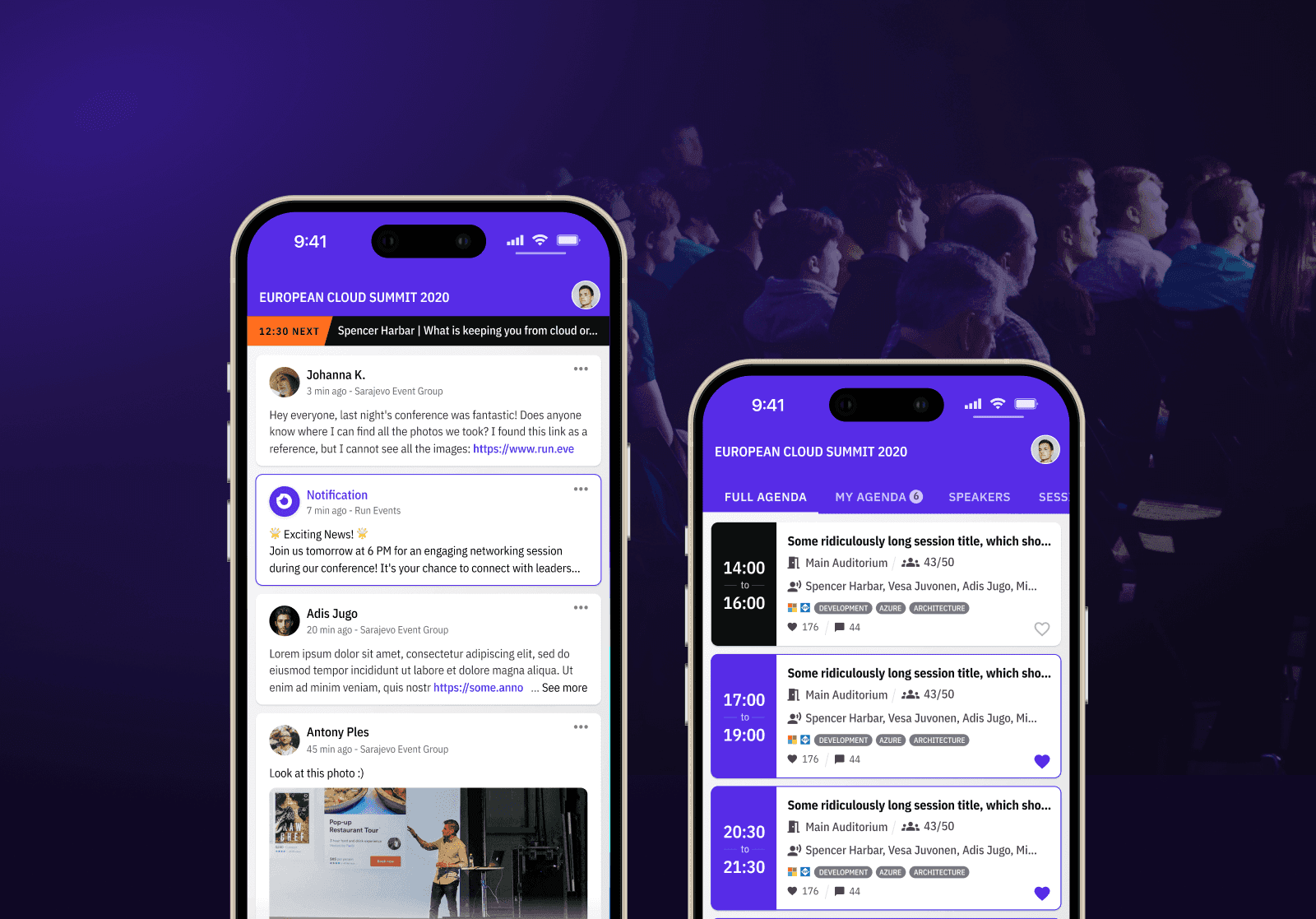 Product design for a premium white-label event app platform, delivering an integrated multi-conference experience for 3,000+ attendees at large-scale events.